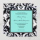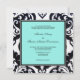 Black & White Damask Background with Blue Accent Wedding Invitations