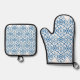 Blue Isan ikat fabric pattern Oven Mitt & Pot Holder Set