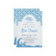 A clean and modern Iftar invitation featuring a serene blue and white color palette. Decorated with traditional Islamic star patterns (Arabesque), a mosque silhouette, and a crescent moon. This minimal yet cultural design is perfect for casual family Iftars, youth community events, or Eid celebration announcements. The arch frame provides a beautiful focus for your personalized text.