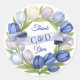 Elegant blue tulip floral design with soft watercolor details, perfect for wedding thank you favours. Featuring a delicate wreath and customisable initials, this refined style adds a romantic and personal touch to your special day. Ideal for envelopes, gift favours, and wedding packaging.