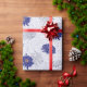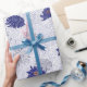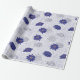 Hand drawn blooming blue japanes chrysanthemum flowers with polka dots line brush seamless pattern.