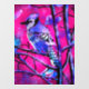 Blue Jay Bird on Tree Branch Pink Abstract Art