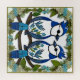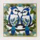 Colourful paper art depicting two blue jays perched on a branch, encased within a decorative frame. The design showcases intricate craftsmanship, vibrant hues, and harmonious details evoking nature's beauty and creativity.