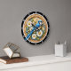 Celebrate the bright beauty of the backyard garden with the Blue Jay Daisy Heritage clock. This charming timepiece features a high-definition graphic centred on a vibrant blue jay perched among a lush cluster of white daisies and delicate blue wildflowers. The songbird's striking blue, black, and white plumage is rendered with exceptional detail, creating a lifelike focal point. The scene is set within a light-toned, intricately carved-wood circular frame featuring elegant swirl patterns and floral accents. While the design masterfully mimics the dimensional textures of fine woodcraft and hand-painted artistry, this is a durable high-definition graphic application on a premium round clock face. It is a prestigious and refreshing addition to any kitchen, sunroom, or nature-loving home.