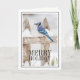 Blue Jay Perched on Snowy Fence Holiday Card
