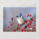 Blue Jay Resting on Hawthorn Tree Holiday Postcard
