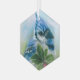 This hexagonal glass ornament is embellished with my winter holiday themed artwork originally created in soft pastels depicting a vivid blue jay bird accented with a sprig of green holly leaves and a red berry.
