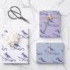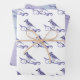 A pattern of a blue jay perched on a vine. The sheet backgrounds are white, lavender and blue.