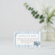 The COLBY blue jean baby shower books for baby enclosure card design features a white and light blue denim stripes background with a denim rattle and stack of denim books.