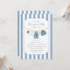 Celebrate the joyous arrival of your little boy with our "Blue Jean Baby" baby shower invitation. This charming card features soft denim details like cute baby clothes and trendy stripes as background.