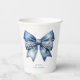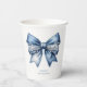 Introducing adorable paper cups for a delightful baby shower that embodies the essence of country charm! This enchanting design showcases a whimsical blue jean print coquette bow, adorned with exquisite pearl and lace detailing that adds a touch of elegance. The beautiful contrast against the soft white background creates a striking visual appeal.