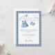 Blue Jean Gingham Thank You Girl Baby Shower. Available digitally and printed. A Blue Jean Baby is in a set modern script. Easily personalise the rest of the words as required.
