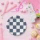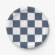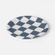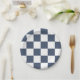Paper plate with a blue jeans blue and white chequered pattern. Perfect for any gathering.