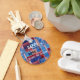 Personalised keychain featuring a modern abstract design with blue jeans and red and off white playful patterns. The pattern can also be rotated or scaled. Since the colours are those of the American flag, you can also use this keychain to support patriots.