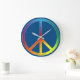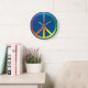 You will love your round clock with our beautiful sapphire blue textured fabric with a denim effect. We placed a "peace" symbol on it, enhance with a unique gradient rainbow. Following the curve of the peace symbol, you will find a customisable name printed in a modern black font. Replace the default name with yours, your initials, or any custom text. Here is a suggestion of words matching the theme that you can use: LOVE, PEACE, LGBTQ+, FREEDOM, LIBERTY, DIFFERENCE… (leave blank if you want no text).