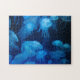 Unique blue jellyfish jigsaw puzzle. Photo taken at the Florida Aquarium at Tampa. Color is from aquarium lighting in the tank.