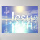 Highly reflective water surface shows the name of our Lord with a cross. Beautiful in print.