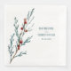 A watercolor painted blue juniper branch with red berries and your names and numeric date in a rustic block lettering.