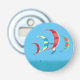 Colourful kitesurfing / kiteboarding kites flying in the blue sky over the ocean themed button bottle opener.