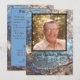 Personalise a funeral program with the photo of deceased loved one. The background features a photo of a blue Labradorite rock. The quote, "Life is eternal, and love is immortal, and death is only a horizon; and a horizon is nothing save the limit of our sight," by Rossiter Worthington Raymond is on the front below the photo, name and years of life. On the back is room for the order of services for the funeral, the list of pallbearers, and another quote, "Like a bird singing in the rain, let grateful memories survive in time of sorrow," by Robert Louis Stevenson. The Labradorite photo displayed on the back with program information. Photos and text are set up to be personalised with your own photos and text. If you need help customising, please contact me.