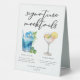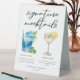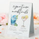 This cute signature mocktails table tent sign features 2 drink drawings and their ingredients for your wedding bar or pool party. A Blue Lagoon and non-alcoholic Lemon Drop for a trendy bar menu with your customised event text.