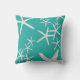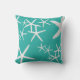 Large, square pillow with white starfish and tropical green - blue colour on both sides. The tropical theme is perfect decor for any beach house or condo.
