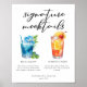 This cool pool party or beach wedding signature mocktails menu poster features simple script above 2 drawings of drinks and their ingredients for your tropical island celebration. A cute non-alcoholic Blue Lagoon and Summer Sunrise drink for a refreshing poolside or ocean reception in the summer. Complete with the couple's names and date.