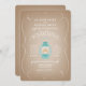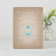 A card stock inspired camping wedding invitation featuring an illustration of a light blue lantern with heart shaped flame and a swirl border.