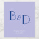 Design features a modern bright blue monogram with a lavender colour plain background.