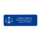 This blue custom law school graduation return address label features white typography for a class of 2024 graduate. Customise with your address next to the scales of justice for a great personalised lawyer or attorney mailing accessory.