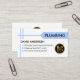 An all white cover features a blue border leaking pipeline design. Over at the top is the business name "PLUMBING" with your prestigious name just underneath. Inside the waterdrop buttons are all the contact and slogan captions. ; You can change them so suit your own service needs. Towards the lower right corner is a gold pipe logo you can use.