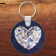 Photo image of blue leather-like surface as a background, with graphic image of a diamond heart.