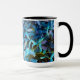 The original artwork on this Mug was made from an original photograph by ZoeSPEAK of a Florida oak tree at the edge of the woods. A blast of sunlight strikes some leaves in the foreground, and the shadows and light make a leafy pattern, turned shades of tropical blues in this impression.