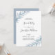 Invite your guests to your wedding with this blue watercolour leaves invitation featuring a snowy background perfect for a winter wedding.