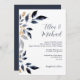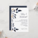Blue Leaves with Gold Wedding Invitation