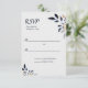 Blue Leaves with Gold Wedding RSVP Card