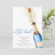 Raise a glass to the happy couple with this Blue Let's Toast Engagement Party Invitation! Featuring a sleek champagne bottle design and bold modern script, this invite is perfect for a couples shower, engagement brunch, or evening soirée. Personalise with your details and impress guests with this stylish and fun design.