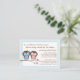 A charming poem requests that guests bring a book for the baby-to-be to start the new mum off with a library of beloved children's books. Just insert this sweet card inside the baby shower envelope. The adorable baby blue, yellow and mint colour scheme with a cute little row of matching books makes a perfect design to coordinate with just about any baby shower invitation for a boy.
