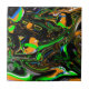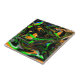Blue, Lime Green, Orange, Black and White Abstract Ceramic Tile