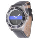 Blue line black leather watch, show your family and guests that you support the police and all they do or commemorate the loss of one of the nation's finest. Designed by Button Knows Best; ButtonKnowsBest™, All Rights Reserved.