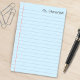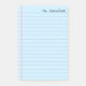 Blue lined notebook paper sticky notes. Customise it by adding your name. Great as office supplies or for back to school.
