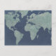 Blue Linen World Map Postcard