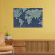 Blue Linen World Map Poster