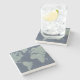 The coasters are gorgeous, a quality feel and heavy weight. They look like a precious archeological find. A rustic stone juxtaposed with a modern floral black and white print. I like the way the print goes slightly imperfect on the cut stone edges giving them a kind-of natural beauty.
