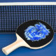 traditional watercolor artwork of a male lion in surreal blue colours on a ping pong paddle