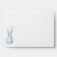 Cute and sweet spring Easter themed baby boy shower paper envelopes featuring blue toile pattern with little bunnies, flowers and butterflies. Those elegant vintage inspired envelopes are perfect for 'a little bunny is on the way!' themed baby elebrations.