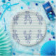 A summer, nautical design of unique blue lobsters on a striped background.