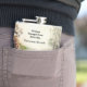 The flask itself is fine. It’s a cheap flask, obviously bought in bulk, however am prepared to overlook that. Given that it is a personalized item, I would have liked to have seen gift boxing instead of the generic packaging. Terrible printing, and/or quality. It’s a cheap, tacky vinyl. It is not cut straight and is also applied in a way that it is overhanging the bottom, causing the glue to catch on items and it will eventually roll and tear, damaging the wrap.