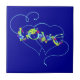 Blue Love Hearts and Flowers Tile