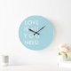 Custom typography wall clock template, by red_dress, featuring the white text "Love is All you Need" on a blue customisable background.